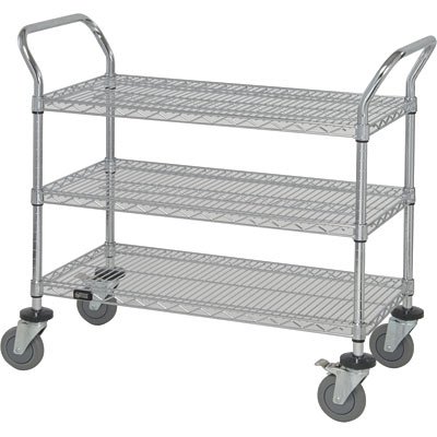 Give versatility to any operation: meals service, health facilitys and manufacturing. Heavy-duty shelving cellular cart withstands corrosion, stops buildup of mud and mud, beef ups visibility of stored parts and allows for sprinkler penetration and ventilation. Shelves (qty.): 3, Shelving Type: Wire, Finish Type: Chrome, Weight Capacity (lbs.. ... Read more Quantum Wire Shelving Mobile Utility Cart - 3 Shelves, 18in.W x 42in.L x 38in.H, Model# WRC-1842-3